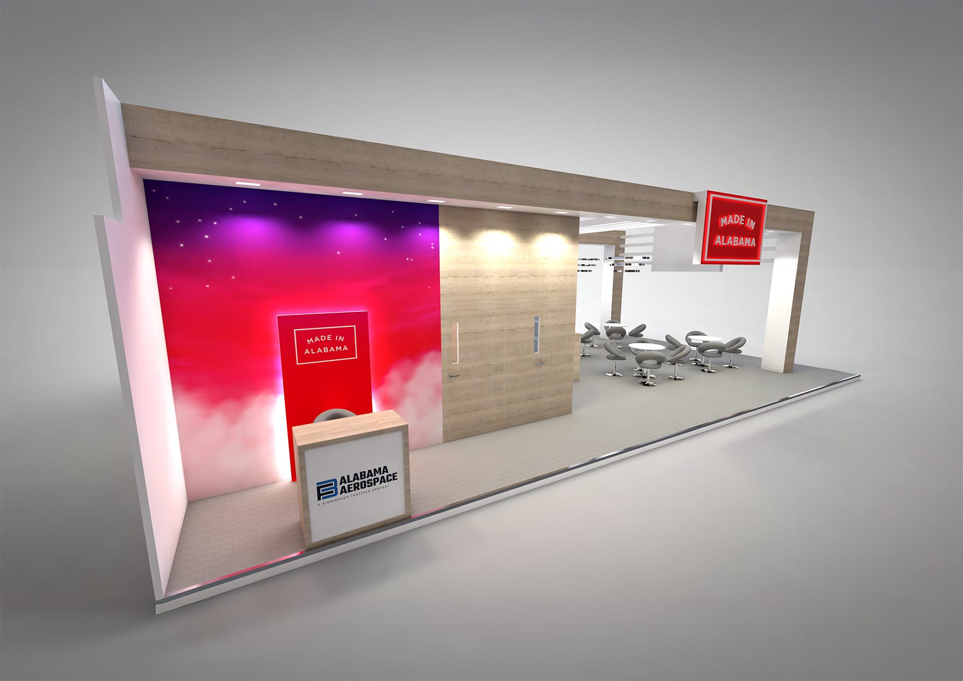 Alabama exhibited at the International Paris Air Show 2025, held from the 16th to the 22nd of June. Their expansive 13.5m x 8m stand was designed to make a bold, professional impression while offering a highly functional environment for business engagement.