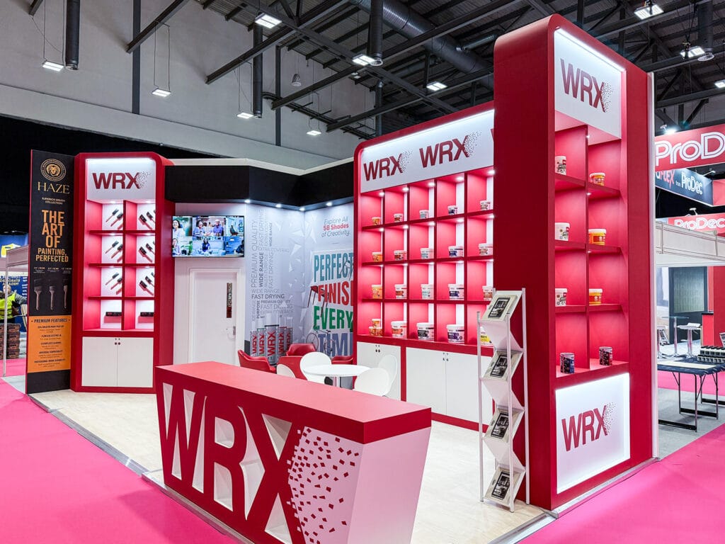 WRX Akcali Boya showcased a bright and professional 8m x 4m stand at the National Paint & Decorating Show 2025, designed to reflect the brand’s creativity and product quality. The stand featured a bespoke reception counter and product display shelves that highlighted the brand’s colour range and coatings, supported by bold graphics and printed wall