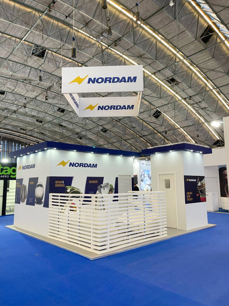 NORDAM secured a prime 6m x 6m island site featuring an impressive hanging banner. This dynamic exhibition stand seamlessly integrated ...